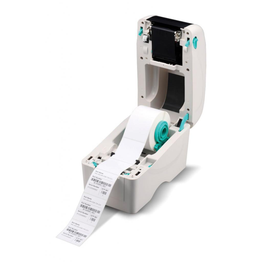 Замена расходных материалов в TSC TDP-225 облегчена из-за удобного строения корпуса. Достаточно просто поднять крышку принтера и загрузить рулон этикеток. В принтере существуют датчики «на просвет» и «черной метки».